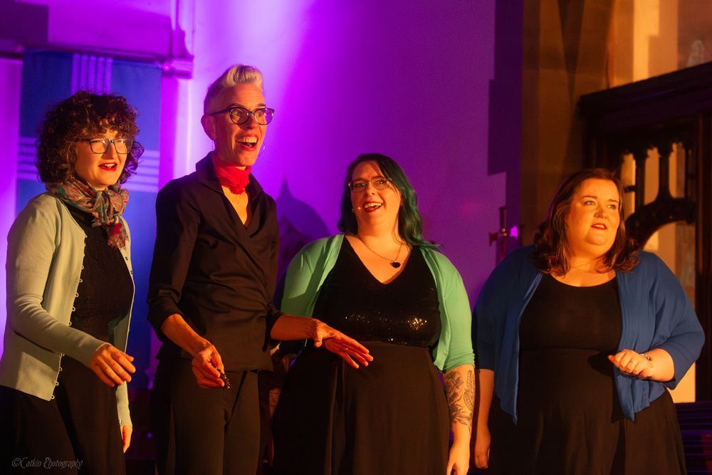 Sugar Rush is a four-part close-harmony a cappella ensemble based in West Yorkshire. Fiona Earnshaw, Charlie Harrison, Christina Grant and Alison Crutchley met singing in the White Rosettes, an award-winning Leeds barbershop chorus, but their quartet repertoire mixes barbershop with pop, rock, country, songs from stage and screen, and some tunes that defy categorisation… Sugar Rush showcase a selection of arrangements by their bass, Alison Crutchley, who specialises in transforming much-loved 80s and 90s pop into something four voices can sing. With a relaxed and engaging style, the quartet aim to draw audiences in and take them on a journey with each song, and their infectious enthusiasm for the music they love shines through in every number.